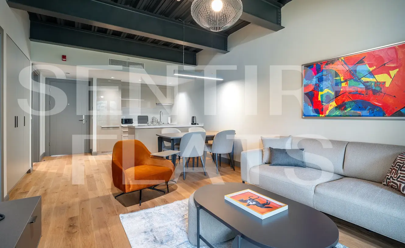 Bu zarif 1+1 daire, size lüks bir yaşam deneyimi sunar; geniş banyosu İtalyan mermeri, yüksek kaliteli musluklar ve taze yıkanmış havlularla süslenmiştir. Doğal güneş ışığıyla dolu yatak odası, titizlikle ütülenmiş çarşaflarıyla ve İstanbul'un muhteşem manzarasını sunarak huzurlu bir alan sağlar. Oturma odasında, rahatlatıcı renkler ve yumuşak kumaşlar, lüks bir oteli anımsatan hoş bir atmosfer yaratmak için bir araya gelir. Tam donanımlı mutfak, misafirleriniz için ihtiyacınız olan her şeyi içerir, hem mutfak sanatları keşfi hem de günlük kolaylık sağlar. Akıllı TV'nizde sevdiğiniz programları izlerken rahatça dinlenin. Bu daire, yaşam alanlarında ince detayları ve bir dokunuş zarafeti takdir edenler için tasarlanmıştır.